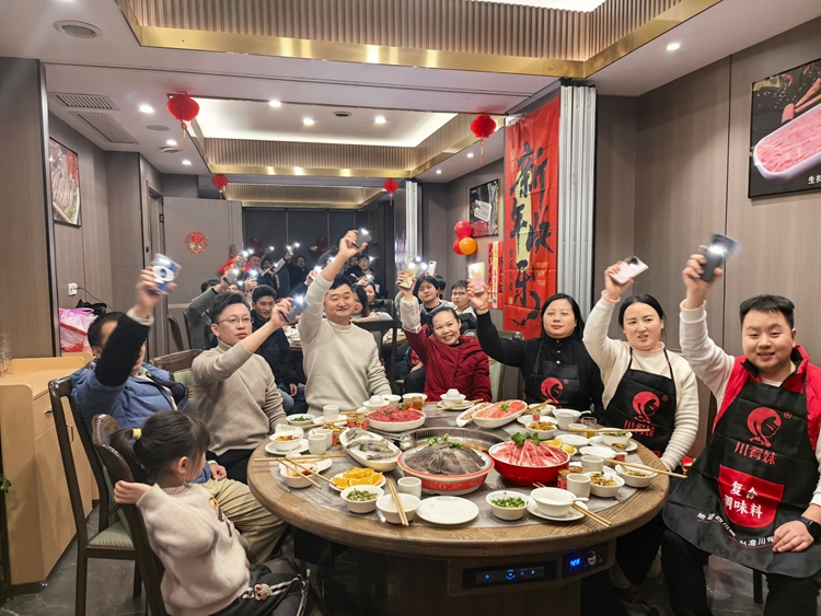 傍晚,轉(zhuǎn)場(chǎng)至臨江苑?;疱伔序v,紅湯白霧間,沸騰的不只是鮮香食材,更是坦誠(chéng)交流的熱情。舉杯、暢談、游戲……在氤氳熱氣中,情感在流動(dòng),關(guān)于未來(lái)的藍(lán)圖也在共同勾畫。